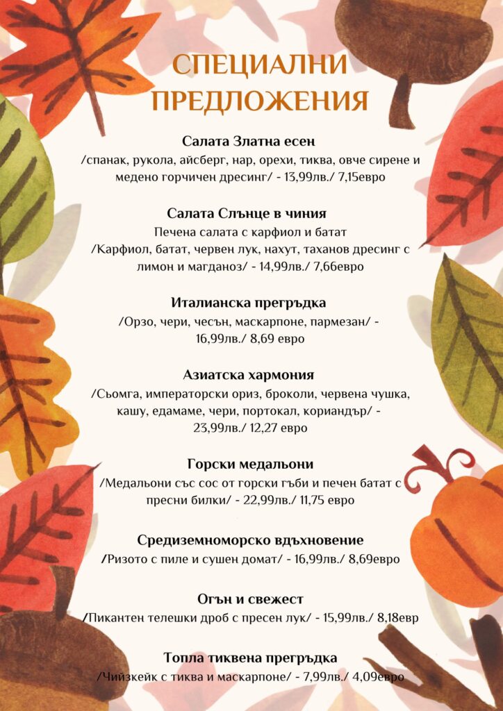 Поръчайте от нашето обедно меню на тел: +359 898 880 102
